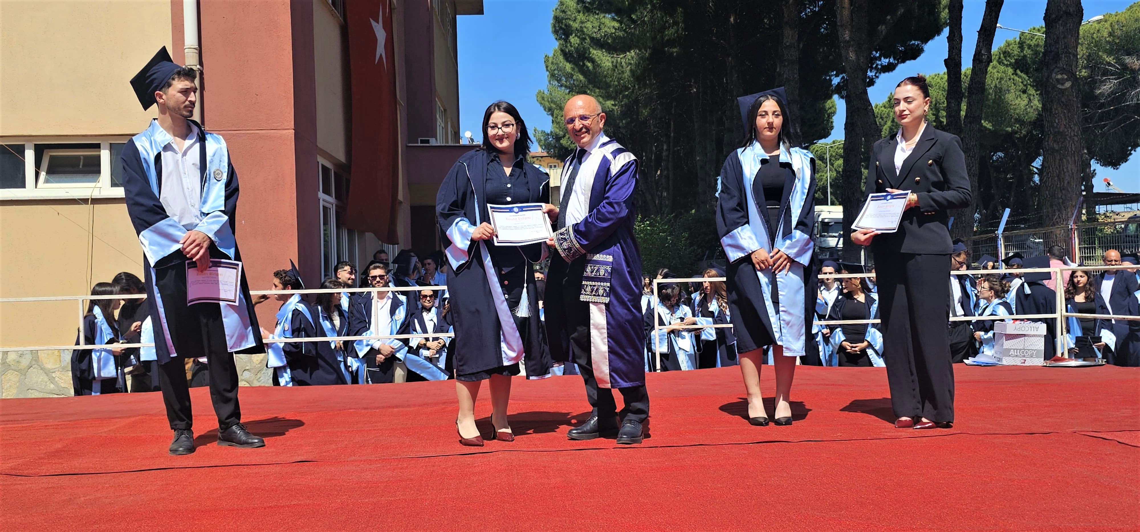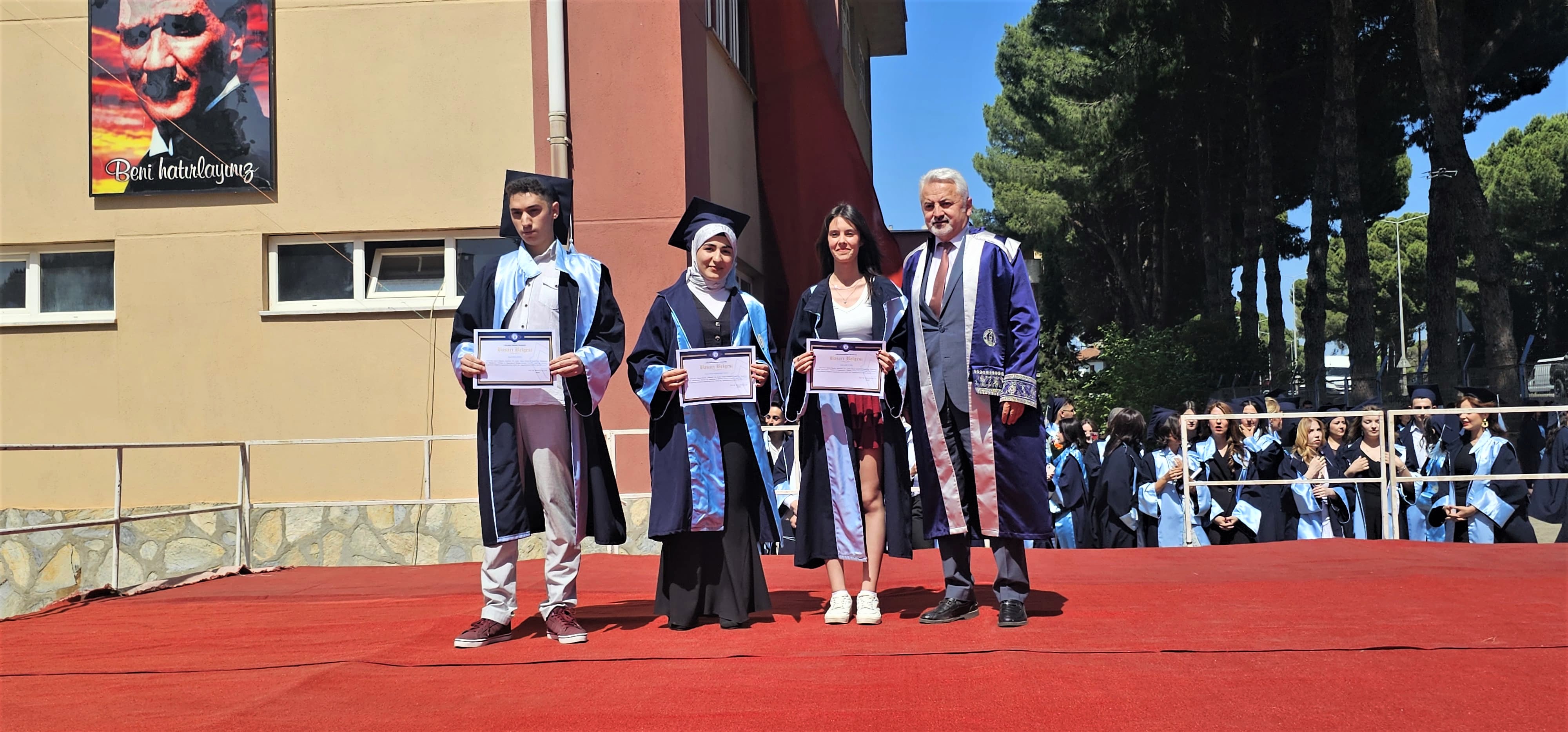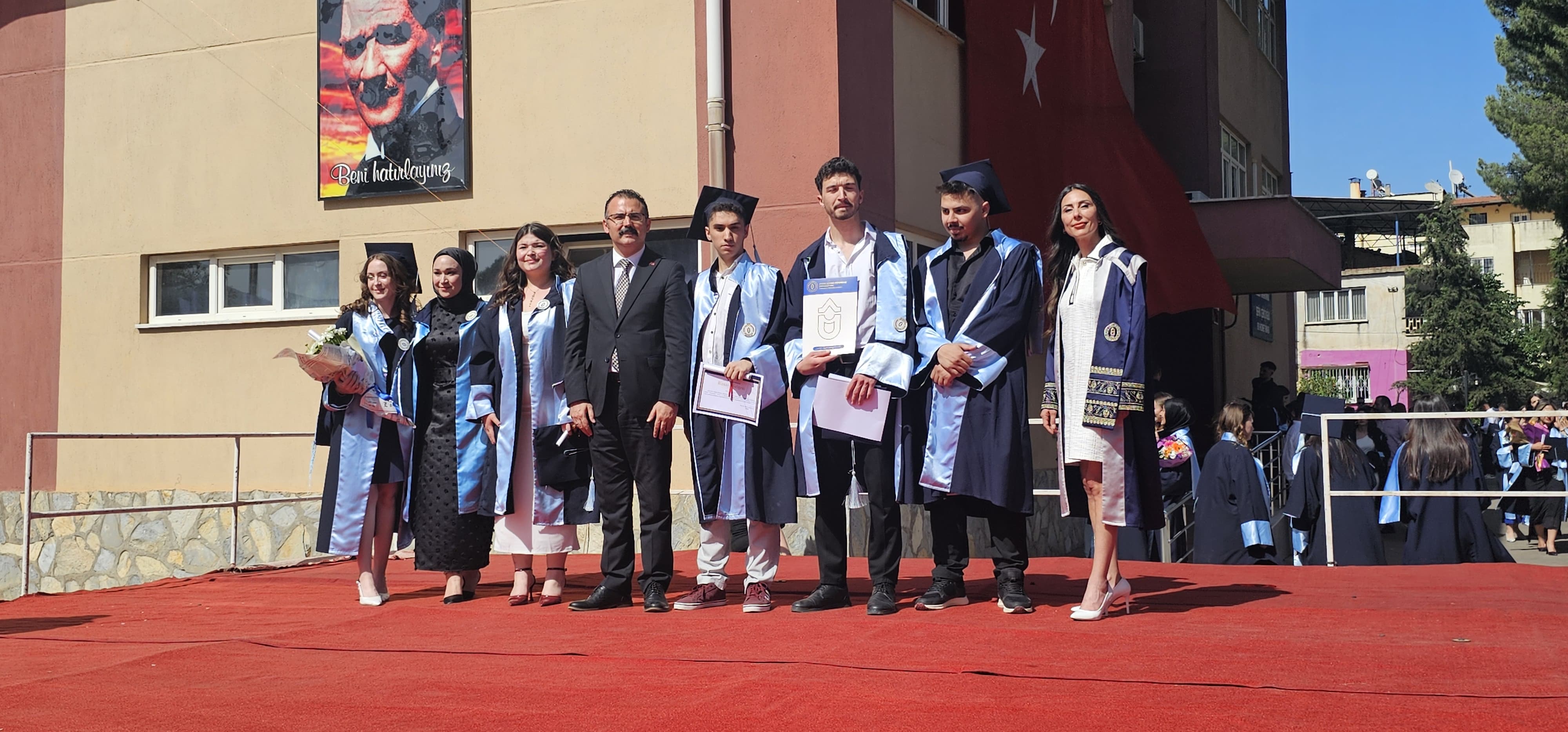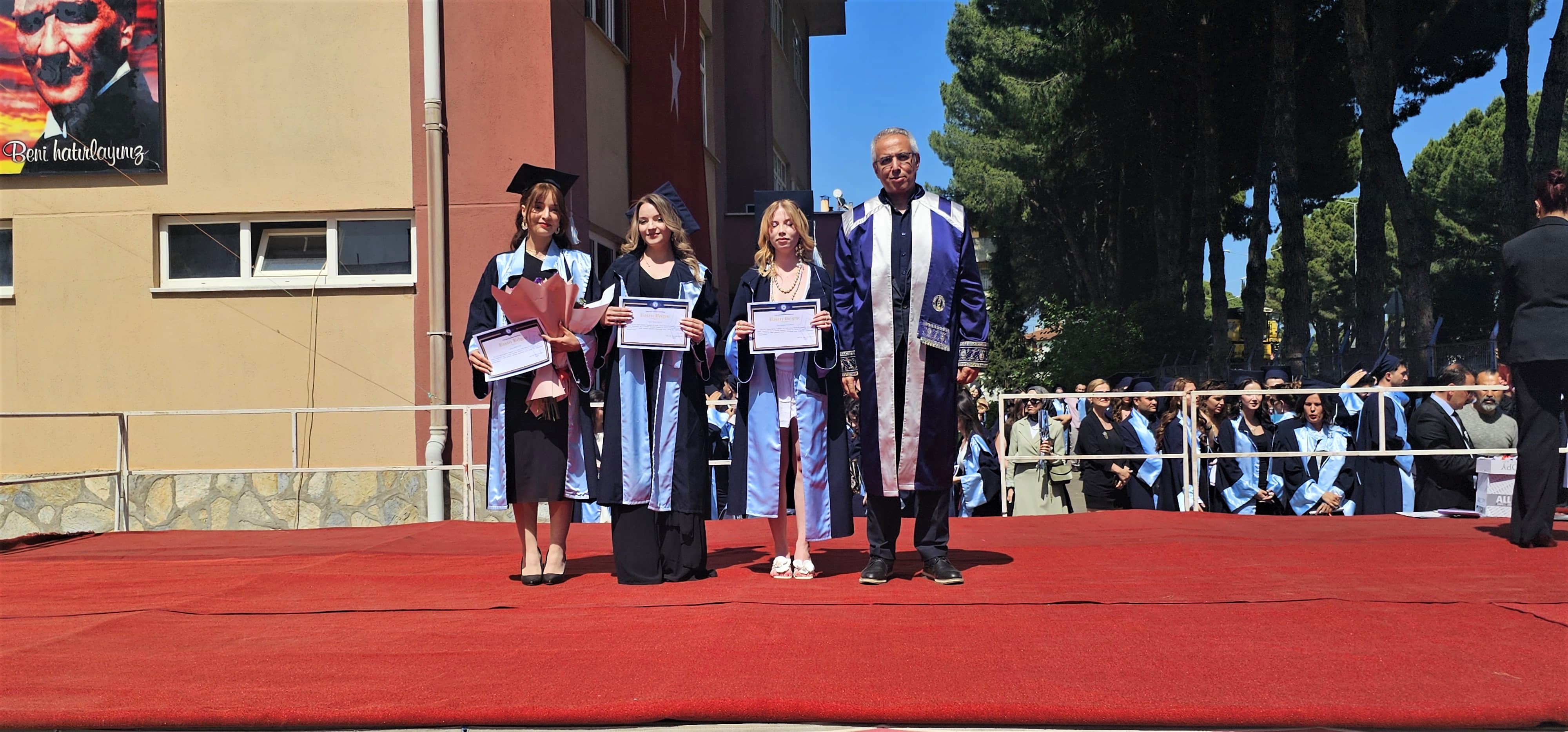 Mezuniyet töreni, öğretim üyeleri ve kurum amirleri tarafından tüm mezunlara başarı belgelerinin takdim edilmesinin ardından öğrencilerin keplerini atmaları ve fotoğraf çekimi ile sona erdi.