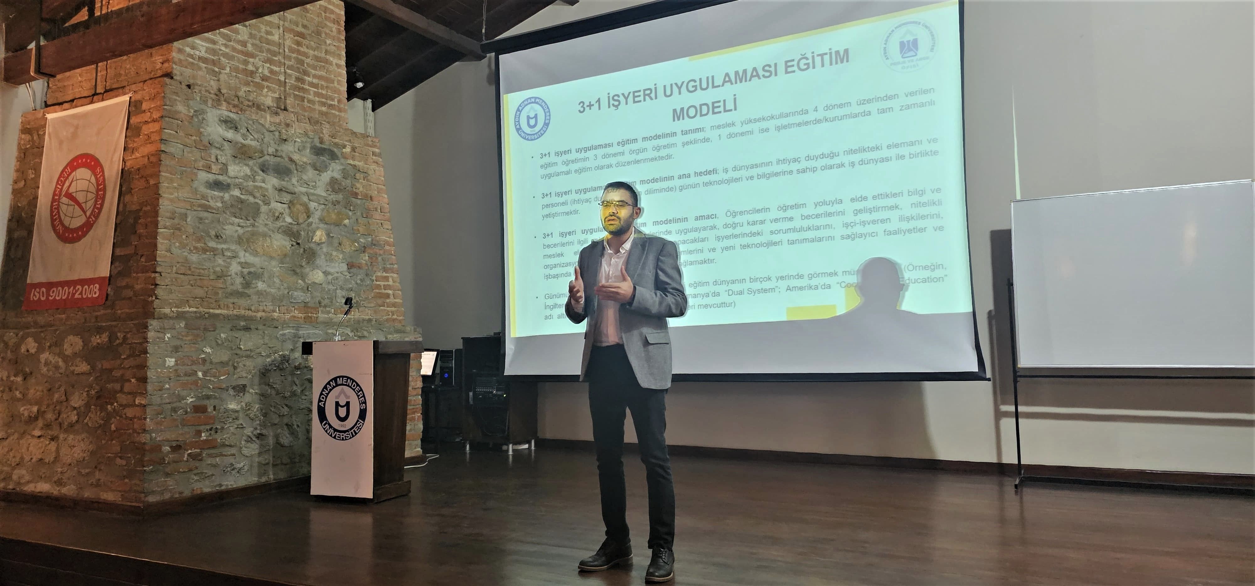 Toplantıya konuşmacı olarak katılan Üniversitemiz Proje ve AR-GE Koordinatörü Dr. Öğr. Üyesi Kemalettin Ağızan, 3+1 Eğitim Sisteminin Üniversitemiz eğitim ve öğretim kalitesine sağlayacağı faydalara değindi. Üniversitemizin eğitim-öğretim alanında önemli yol kat ettiğini, Avrupa standartlarına yakın eğitim-öğretim faaliyetleri yürüttüğümüze değindi.