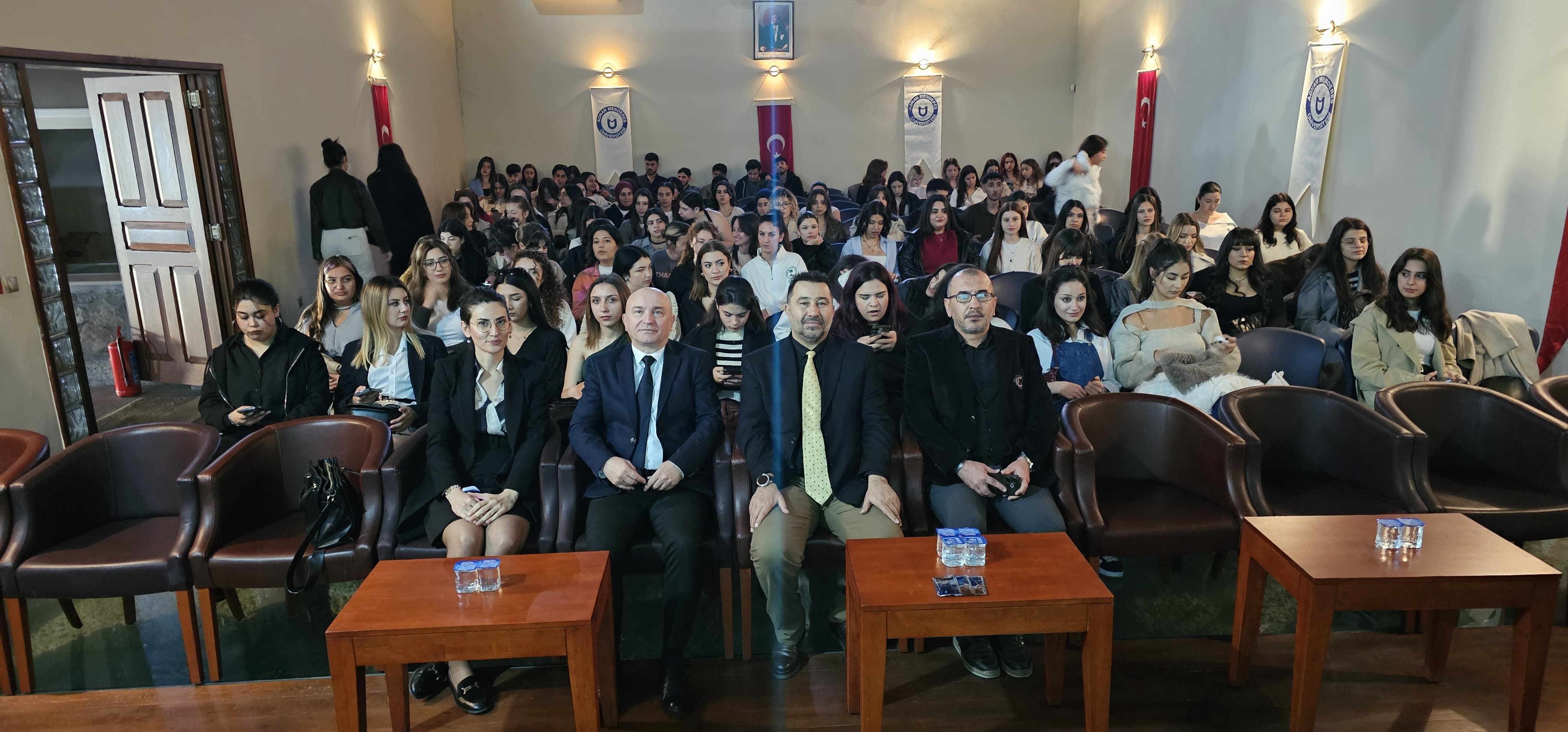 Moderatörlüğünü Öğr. Gör. Arzuhan Çakır’ın üstlendiği konferansta iletişim uzmanı Mustafa Altınay güzellik hizmetlerinde etkin iletişim yöntemlerinin yanı sıra hizmet sektöründe beden dili, kendini ifade edebilmenin önemi, güzellik merkezlerinin hijyen ve sanitasyon konularında dikkat edilmesi gerekenler, tertip ve düzenin gereği gibi konular hakkında bilgiler verdi.