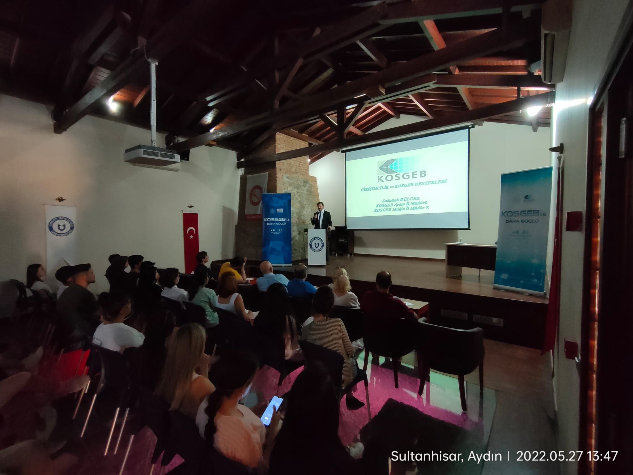 Öğr. Gör. Muammer ERDEN’ in moderatörlüğünde gerçekleşen konferansa, KOSGEB Aydın İl Müdürü Sadullah DÜLGER, öğretim elemanları ve öğrenciler katılım gösterdi.