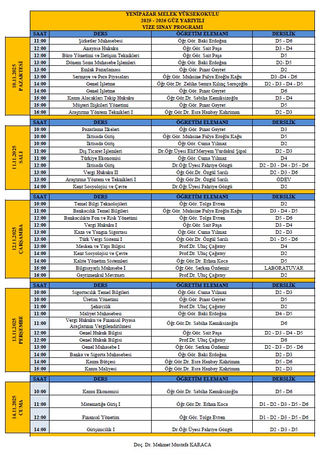 ARA SINAV PROGRAMI ( GÜNCELLENMİŞTİR 07.11.2025 )