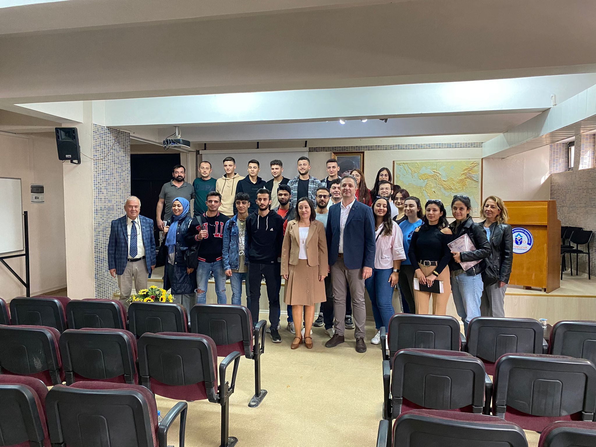 Yenipazar MYO’nda Türkiye’de Muhasebe Mesleği ve İstihdam Olanakları konulu seminer düzenlendi. 2 Kasım 2022 günü düzenlenen seminere konuşmacı olarak Aydın Serbest Muhasebeci Mali Müşavirler Odası Başkanı Engin Ünsal, Tesmer (Mali Müşavirler Temel Eğitim Staj Merkezi) Yönetim Kurulu üyesi Aynur Kılıç ve Tesmer Yönetiim Kurulu Üyesi ve aynı zamanda okulumuz eski müdürü Adem Çataloğlu katıldı.