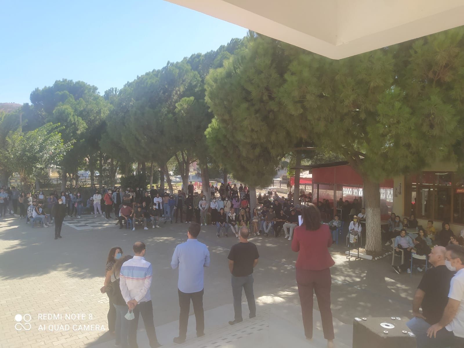 Okul bahçesinde açık havada yapılan toplantıya Yenipazar MYO akademik ve idari kadrosuyla öğrenciler katıldı. Açılış konuşmasını yapan Okul Müdürü Dr.Öğr.Üyesi Elif Meryem YURDAKUL Okul, birimler, devam devamsızlık, ders geçme ve mezun olma konularında öğrencilere bilgiler verdi.