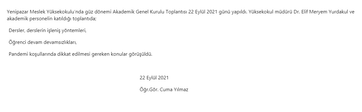 Yenipazar Meslek Yüksekokulu