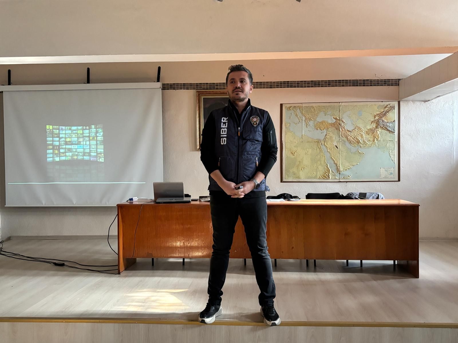 Üniversitemiz Yenipazar Meslek Yüksekokulunda (MYO) 10 Aralık 2025 tarihinde “Siber Farkındalık” eğitimi gerçekleştirildi. Yenipazar MYO konferans salonunda düzenlenen eğitime konuşmacı olarak Aydın İl Emniyet Müdürlüğü Siber Suçlarla Mücadele Şube Müdürlüğünde görevli polis memurları katıldı. Eğitim kapsamında siber suç, internet üzerinden yapılan dolandırıcılık faaliyetleri, dijital bağımlılık, internet kullanımında temel güvenlik önlemleri gibi önemli konularda bilgiler aktarıldı.